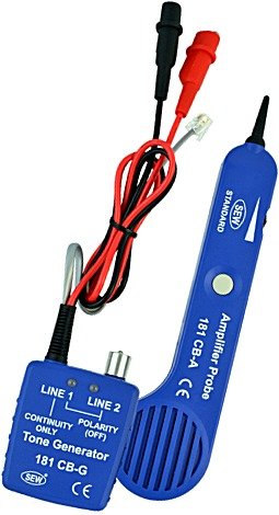 ● Tone Generator is a great tool for locating and identifying cable pairs or individual conductors. ● 181 CB-G does not only serve as a tone generator, but also serves as a continuity and polarity tester. ● A tone selector switch located inside the unit for selection of the fast tone or the slow tone. ● The continuity function is only applied to Line 1. ● Two bi-colored LEDs for Line1 and Line2 indication of the polarities of the telephone lines. ● The unit has alligator type terminals, a modular cable of 4 conductors with a strong connector.